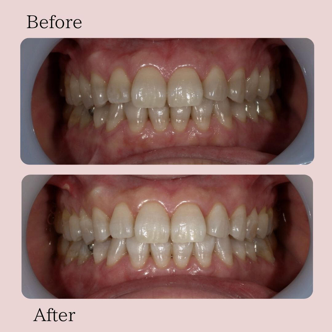 2025年01月17日(金) オフィスホワイトニング オフィスホワイトニングのビフォーアフター写真です。 患者さんは知覚過敏の症状を心配されていましたが、知覚過敏予防の前処理のおかげで無事に終了できました。お食事も翌日からは普通にできますので、気になる方は一度お試しください。
