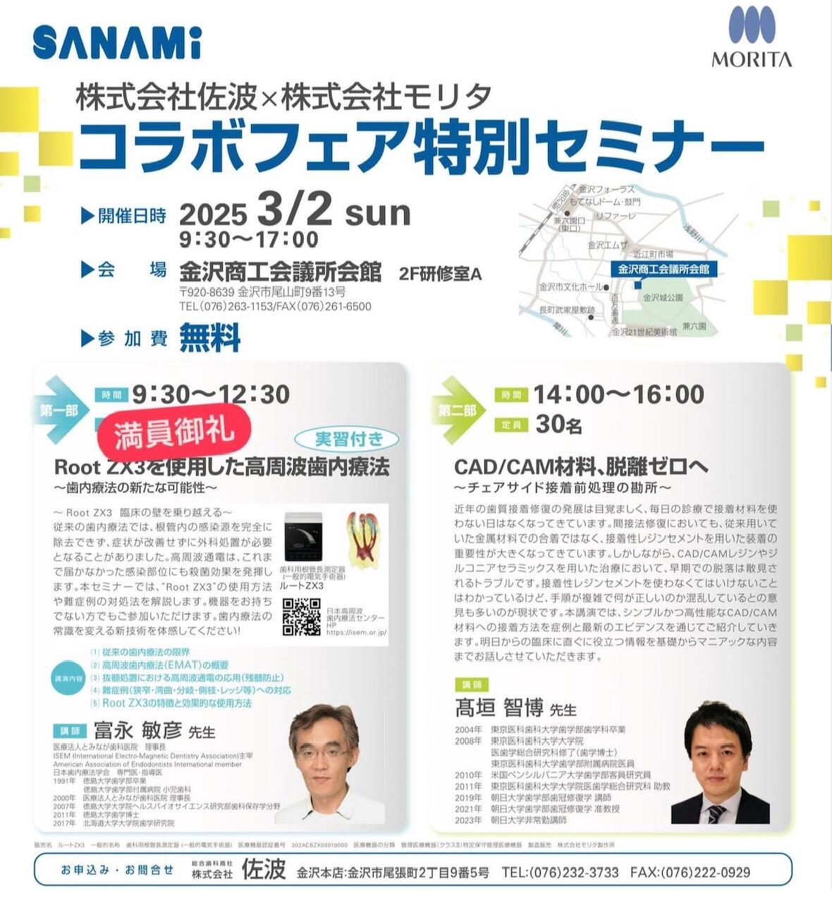本日、株式会社サナミさんとモリタさんコラボのセミナーに参加しました。今は保険診療でも、どの歯にも白い詰め物が入れられるようになりました。患者さんの「白い歯で、自然で綺麗な見た目にしたい」というニーズに応えられる時代です。しかし、歯科材料の進歩にはメリットだけでなく、注意する点もあります。今回の学びを通じて、より良い治療を提供する知識を深めることができました。これからも、最新の技術と材料を活かして、患者さんに安心して選んでいただける治療を提供します。