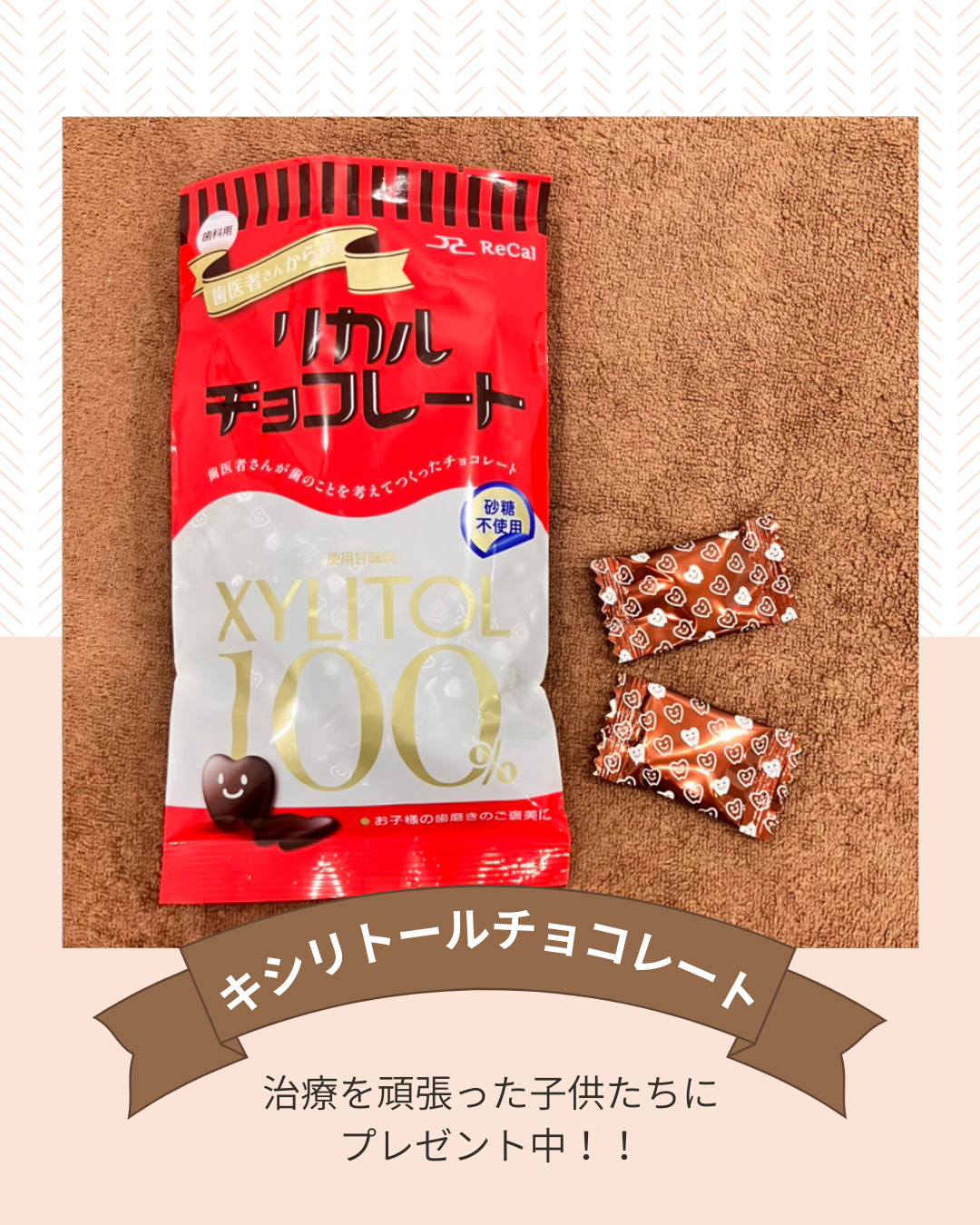 2026年02月06日(金) キシリトールチョコ 2月がスタートしました⛄️✨ 当院では、治療をがんばってくれたお子さまに ちょっとしたご褒美をお渡ししています♬ 今の時期はバレンタインにちなんで 期間限定でキシリトールチョコをご用意しています。 「歯医者さんがんばったよ!」の気持ちを 笑顔で持ち帰ってもらえたらうれしいです!(^^)! ※なくなり次第終了となります