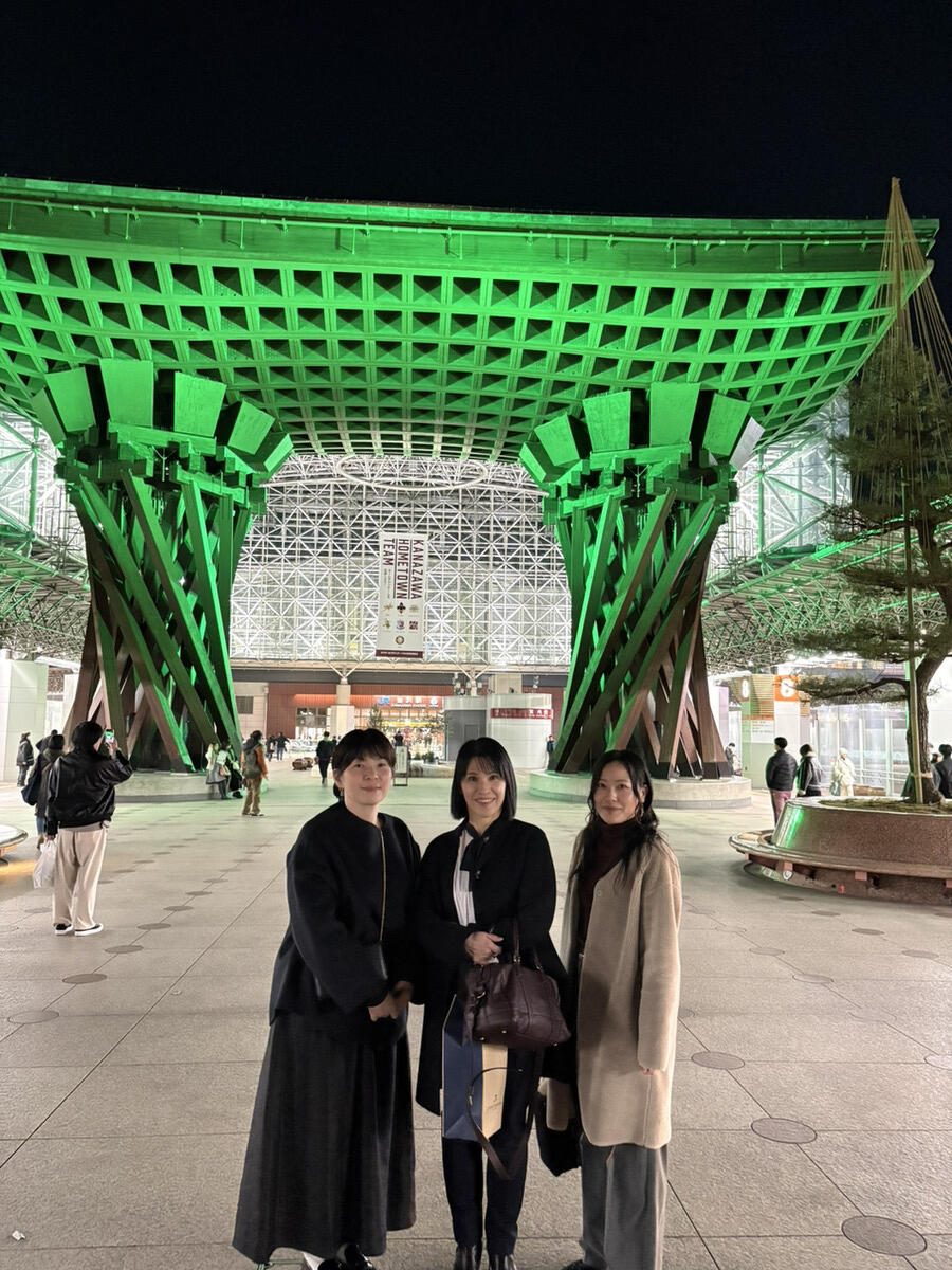 金沢駅の鼓門も、今日は頭痛啓発のシンボルカラーである「グリーン」にライトアップされています。